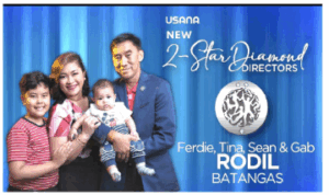 Today, Tina is up there in the Usana corporate tier, with a position title as Executive 2-Star Gold Director. With the help of Ferdie, she now heads numerous Business Centers in various cities and provinces. Her goal for the coming years is to build more Business Centers in other locations. Her ultimate aim is to make this business her and Ferdie’s legacy that they can pass on to their children, particularly Sean so she can fulfill her promise to God that Sean will help other people when he grows up. But Tina is the first to admit that her Usana Journey is not one without rejections, disappointments and failures. But she hurdled them, with the support of her family. She also cites the help of team mates, her mentors and friends who first trusted her that she can deliver.